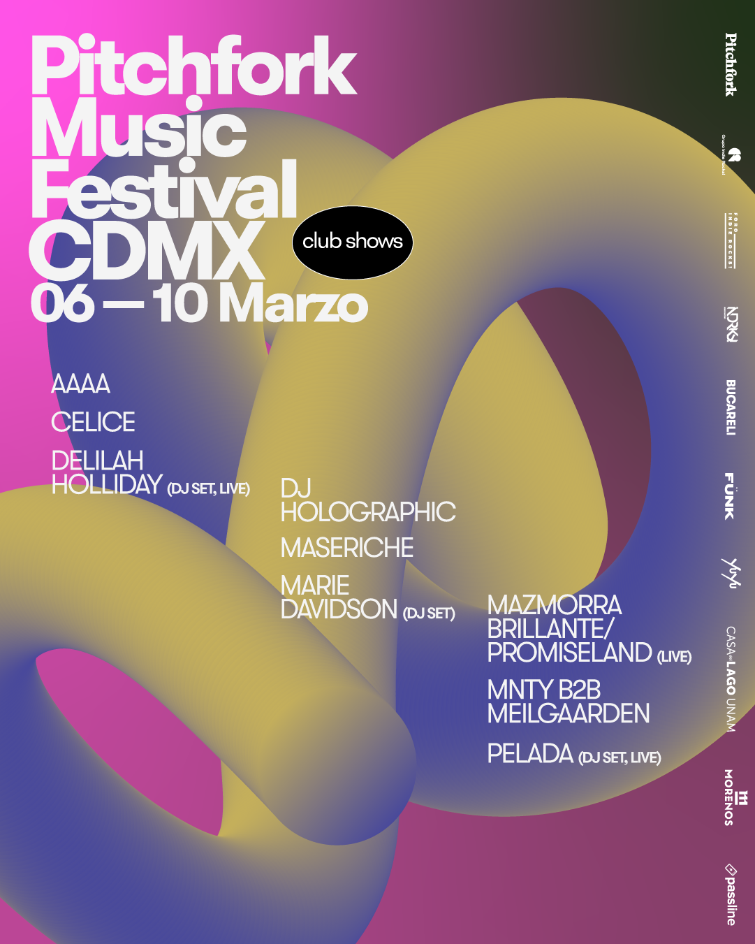 Fue anunciada la alineación completa del Pitchfork Music Festival CDMX. Que ocurrirá del del 6 al 10 de marzo en diversos lugares icónicos de la ciudad como el Frontón Bucareli, Casa del Lago, Foro Indie Rocks!, Fünk, y Yuyu .
