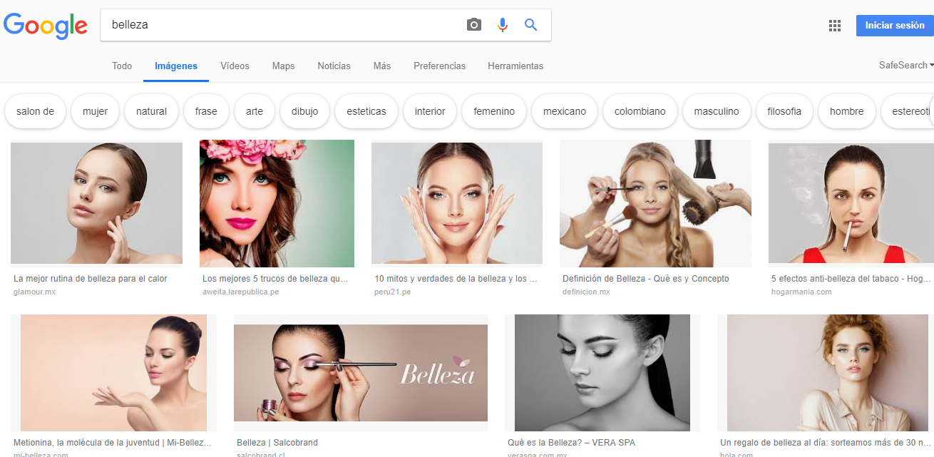 Resultados en imágenes al poner la palabra “belleza” en Google
