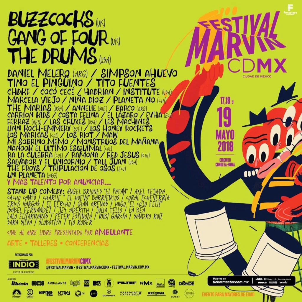 A través de la cuenta oficial de Twitter, @FestivalMarvin, se dio a conocer el line up del festival con bandas como: The Drums, Buzzcocks, Gang Of Four, actualmente complementado con la participaron de aquellas que ganaron el duelo de selección para formar parte del #FestivalMarvinCDMX.