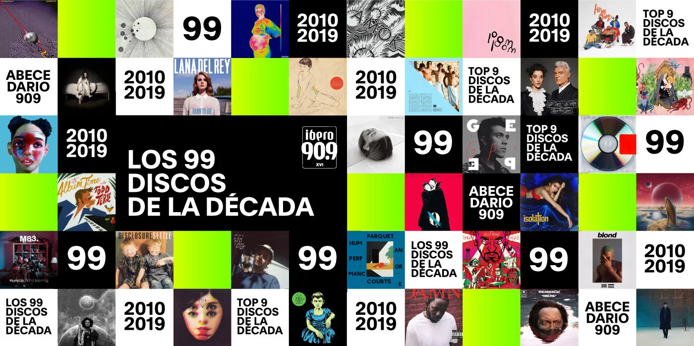 Cerca de 10,000 lanzamientos a la semana son agregados a las plataformas musicales. Vivimos en un mundo donde el ritmo de la industria musical nos deja cada vez menos tiempo para lograr apreciar de manera detallada una canción, un álbum o un artista. A pesar de eso, en Ibero 90.9 hemos logrado hacer un arduo trabajo para compilar los 99 discos más importantes de la década (2010-2019) con ayuda de muchas de las voces que han sido parte de esta estación de radio dentro de este periodo de tiempo.