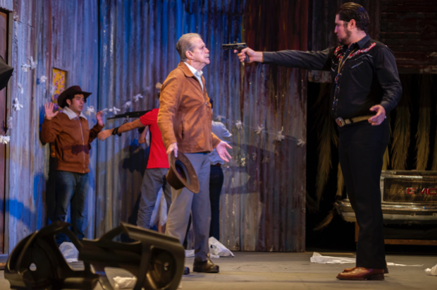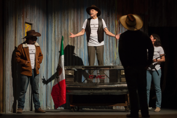 Después de protestas, llamado a las autoridades y rabia, la comunidad de Fuenteovejuna se ve rebasada por esta entidad poderosa y malévola de la que pareciera no haber escape ni refugio. Ante la desprotección total de las autoridades, deciden hacer el levantamiento de un grupo de autodefensa y policía comunitaria que por cuenta propia decide protegerse y hacer justicia. Por supuesto, esto en representación escénica a lo acontecido en Michoacán en el año 2014, ficcionando incluso a Mireles, sensiblemente interpretado por el actor Héctor Bonilla.