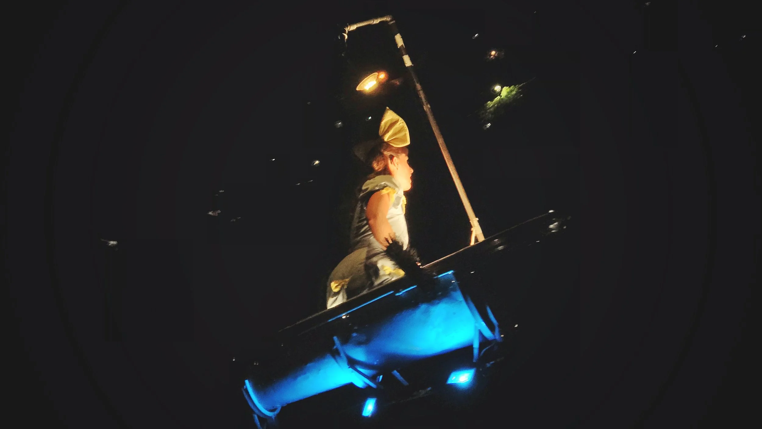 En un principio todos estamos a oscuras. Hallados en el patio Los Pastitos, el público rodea el escenario que está próximo a desaparecer. La casa de Alice, ubicada en el centro, se ve destruida por unos guardias que desconoce y es entonces cuando lo pierde todo. Pierde a su amigo el conejo, su preciado tablero de ajedrez y la seguridad de contar con un techo que la resguarde. No le queda más remedio que naufragar en su tina de baño y remar. La audiencia forma parte de la escenografía, simula un mar, mientras Alice realiza un recorrido aleatorio sobre un andamio con ruedas.