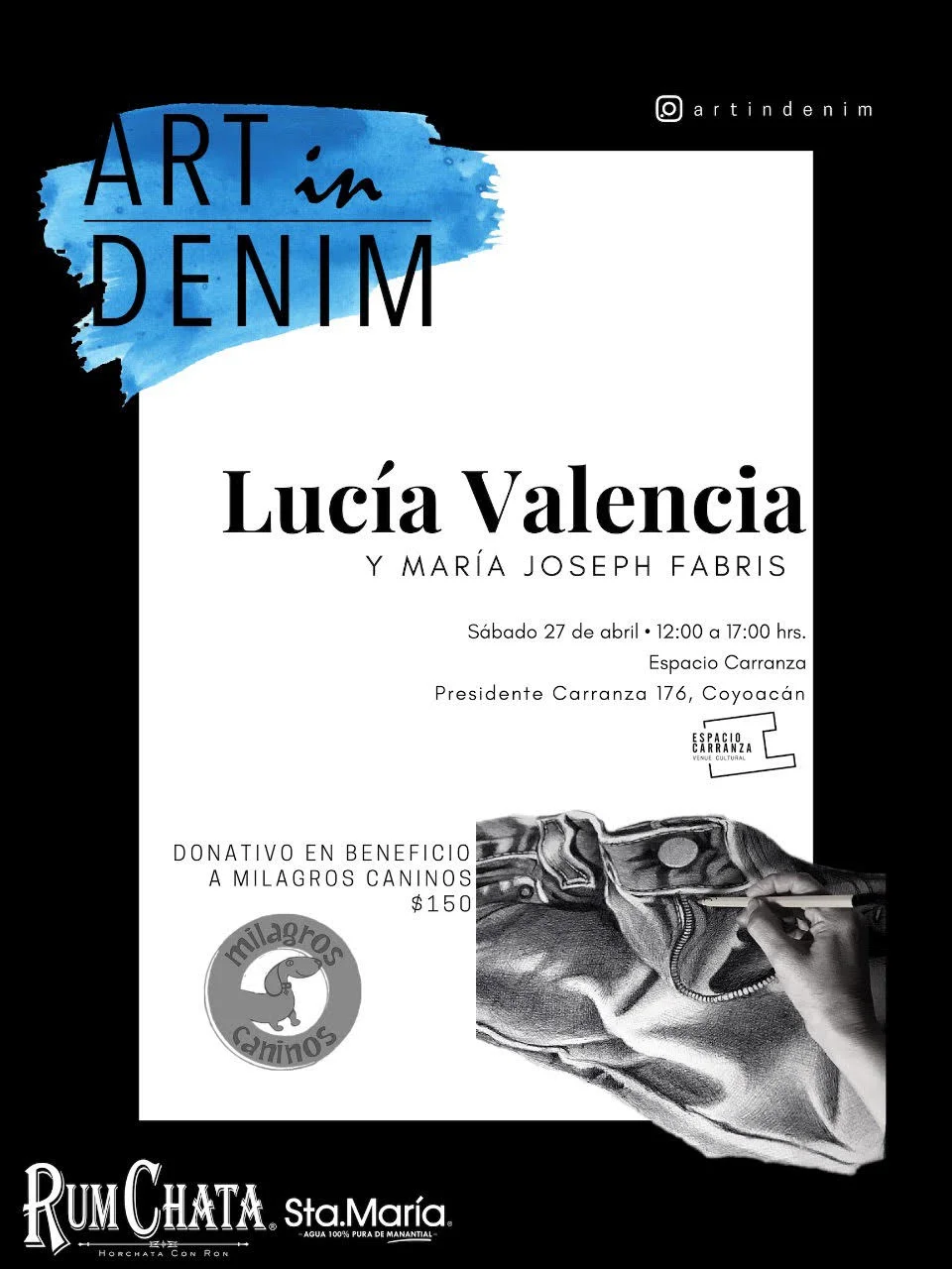 Con el fin de apoyar la buena labor que Milagros Caninos realiza, un grupo de cinco estudiantes de la Universidad Iberoamericana han organizado una exposición en colaboración con la artista mexicana Lucía Valencia, la cual se llevará a cabo el día sábado 27 de abril en un horario de 12:00-17:00 en Espacio Carranza, Coyoacán. El dinero recaudado de las entradas será donado en especie a la asociación. Representantes de la fundación asistirán y llevarán a uno de los perros de la asociación, para que los asistentes de Art in Denim puedan ser testigos del trabajo que realizan. Así que, si aún no tienes planes para este fin de semana, asiste al evento y sé parte de esta noble causa.