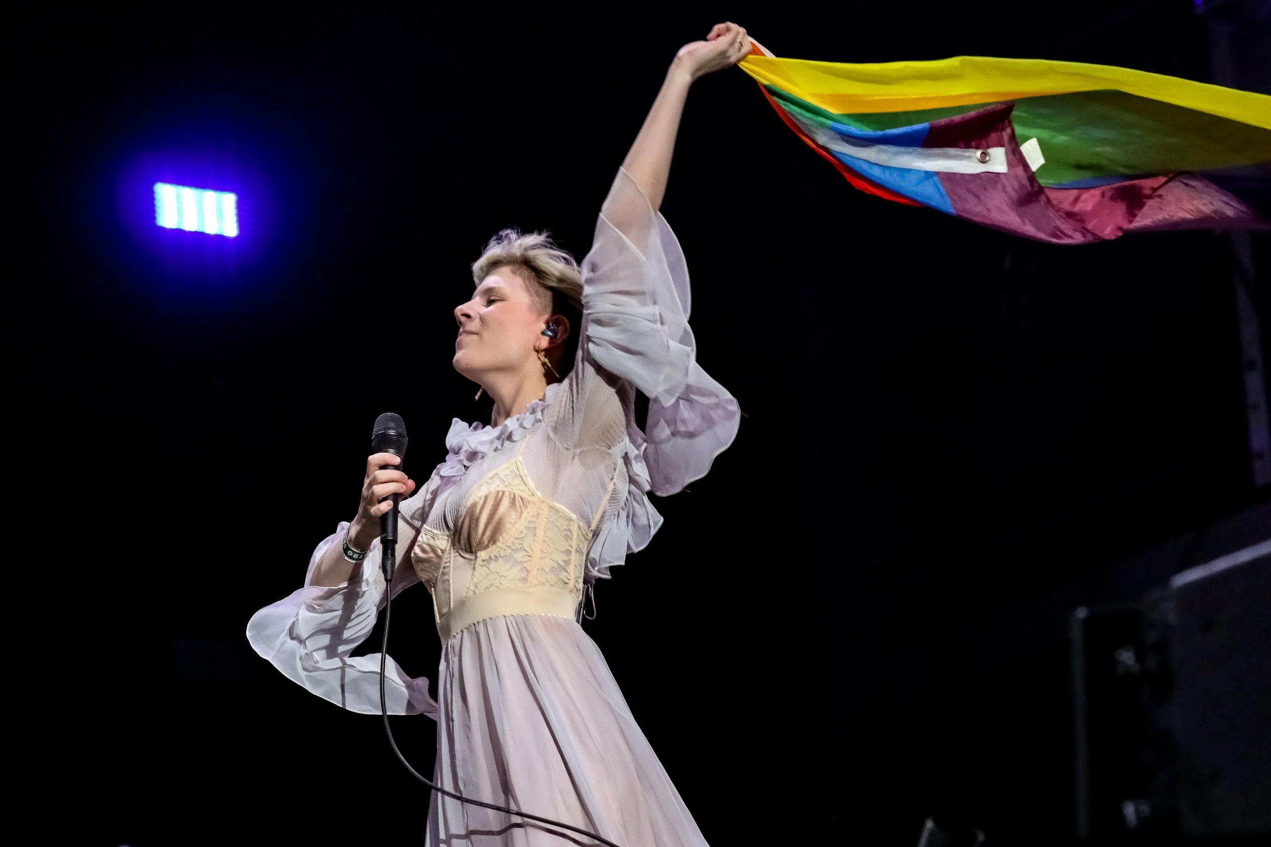 Por otra parte, la originaria de Stavanger se tomó un momento para enviar un mensaje de inclusión y tolerancia: "Debemos amar a quien queramos, el amor es nuestro", expresó. Acto seguido, decidió tomar una bandera LGBT+ que le entregó alguien del público.