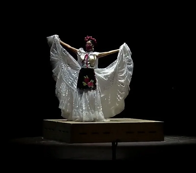 Un hecho sin precedentes, incluso para quienes formaron parte de la programación oficial del festival de este año de forma presencial. Y es que durante toda su presentación, todos y cada uno de los músicos bailares y personal operativo que componen la compañía dancística utilizaron cubrebocas, hecho quizás poco relevante en esta época, pero que sin duda es de llamar la atención considerando el esfuerzo físico que tanto bailarines, bailarinas y músicos realizan sobre el escenario, siendo la única compañía (al menos de esta semana) que ha tenido este gesto.