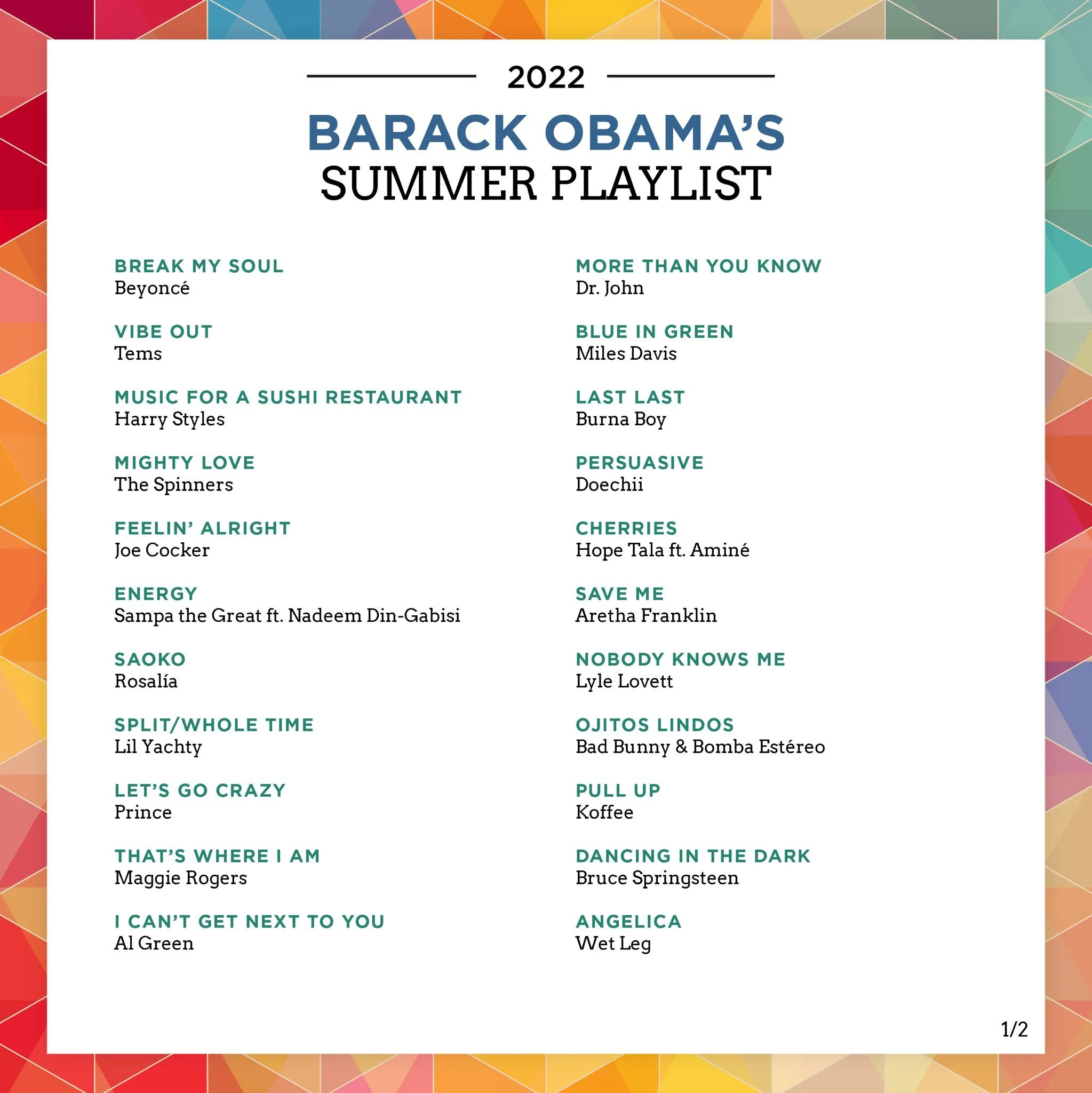 En la lista de temas que publicó a través de sus redes sociales se vislumbra a Obama como a una persona que busca respuestas a través de la música: “Todos los años, me emociona compartir mi lista de reproducción de verano porque aprendo sobre muchos artistas nuevos a partir de sus respuestas; es un ejemplo de cómo la música realmente puede unirnos a todos. Esto es lo que he estado escuchando este verano. ¿Qué canciones agregarías?”, escribió el exmandatario en su cuenta de Twitter.