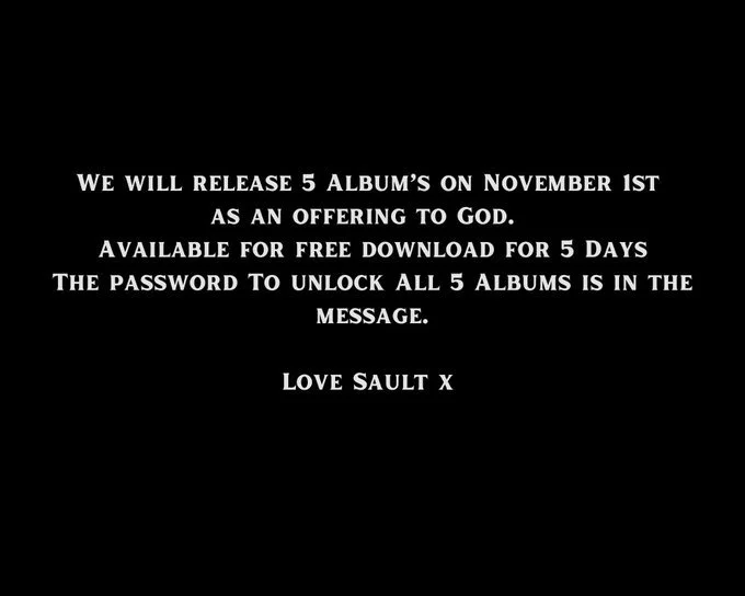 El colectivo británico Sault anunció este 1 de noviembre de 2022 que subieron cinco álbumes nuevos a su página oficial. Sin embargo, hay un giro, las piezas musicales solo estarán disponibles para descargar durante los siguientes cinco días y están protegidas con una contraseña oculta en su comunicado oficial.