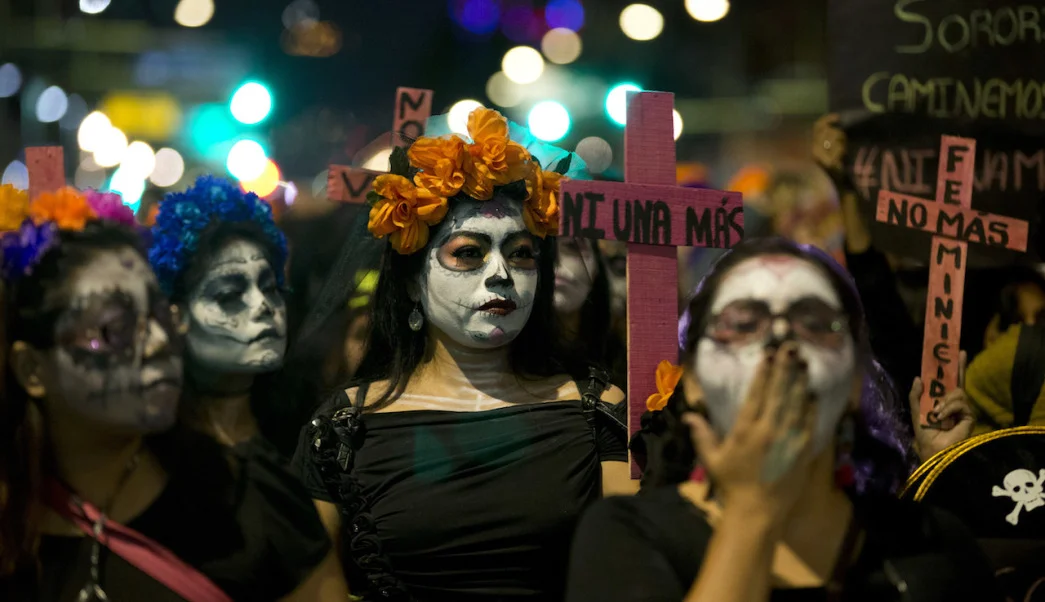 “Ni una más”, “Vivas nos queremos” y “No fue un suicidio, fue un feminicidio” fueron las frases más escuchadas durante la tercera marcha de catrinas en contra de los feminicidios en el país, llevada a cabo el pasado 2 de noviembre. Un gran número de mujeres que forman parte de colectivos feministas se dieron cita en el Zócalo de la Ciudad de México para exigir a las autoridades un alto a la violencia y asesinatos de mujeres en el país, con motivo de las celebraciones por el Día de Muertos.