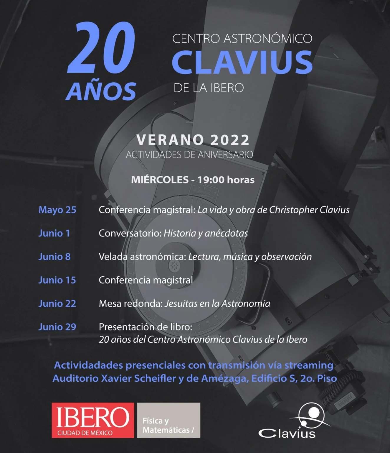 A propósito de esta celebración, el 15 de junio habrá una conferencia magistral y el 22 del mismo mes una mesa redonda con la temática “Jesuitas en la astronomía”. El próximo 29 se presentará el libro “20 años del Centro Astronómico de la Ibero”.