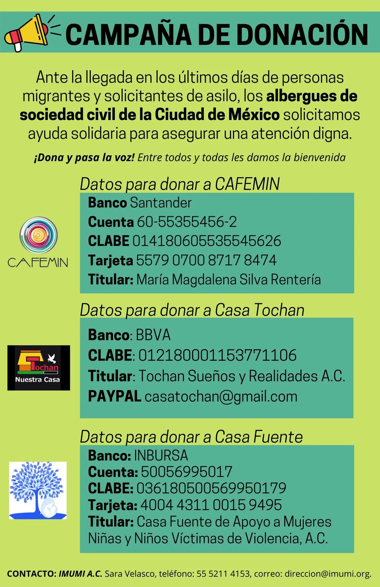Lo recaudado será enviado a Cafemim México, Casa Tochan y Casa Fuente de Apoyo.