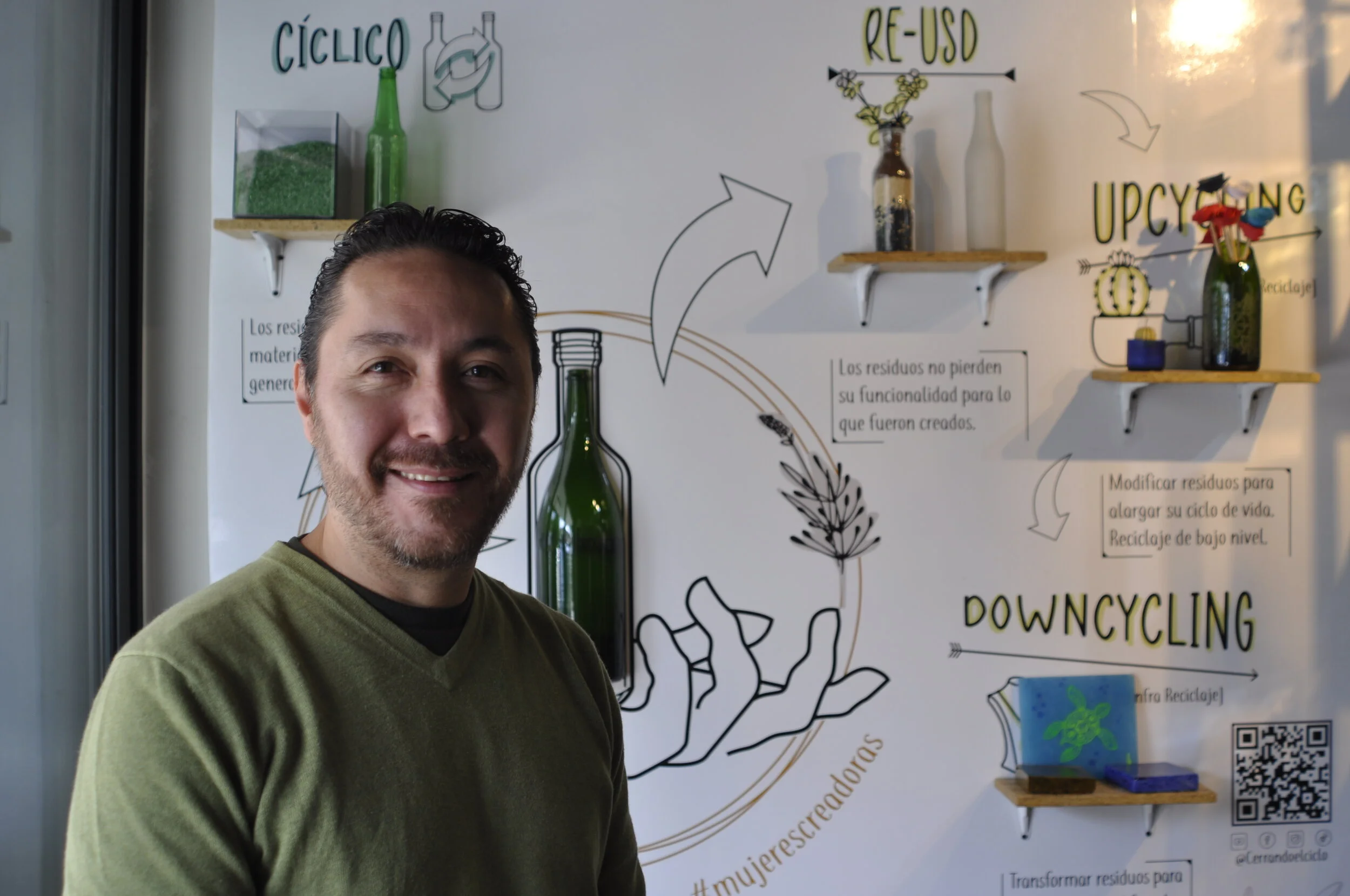 En Cerrando el Ciclo se practica un modelo de economía circular donde se intenta que el producto origen (botellas y envases en este caso) pueda volverse a reutilizar o transformar para no generar más desechos. “Dentro de este modelo hay tres actores principales, el productor, gobierno y nosotros como sociedad al ser responsables de nuestros desechos”, explica José Luis.