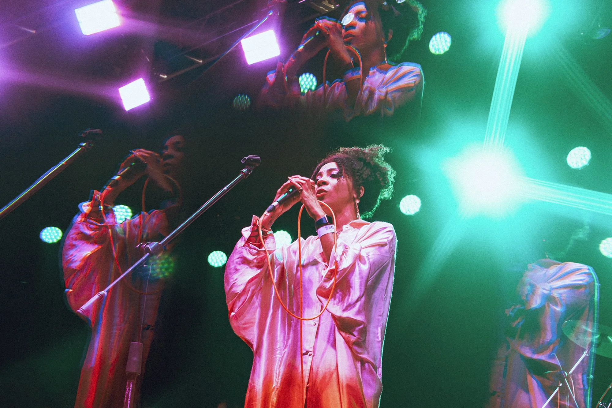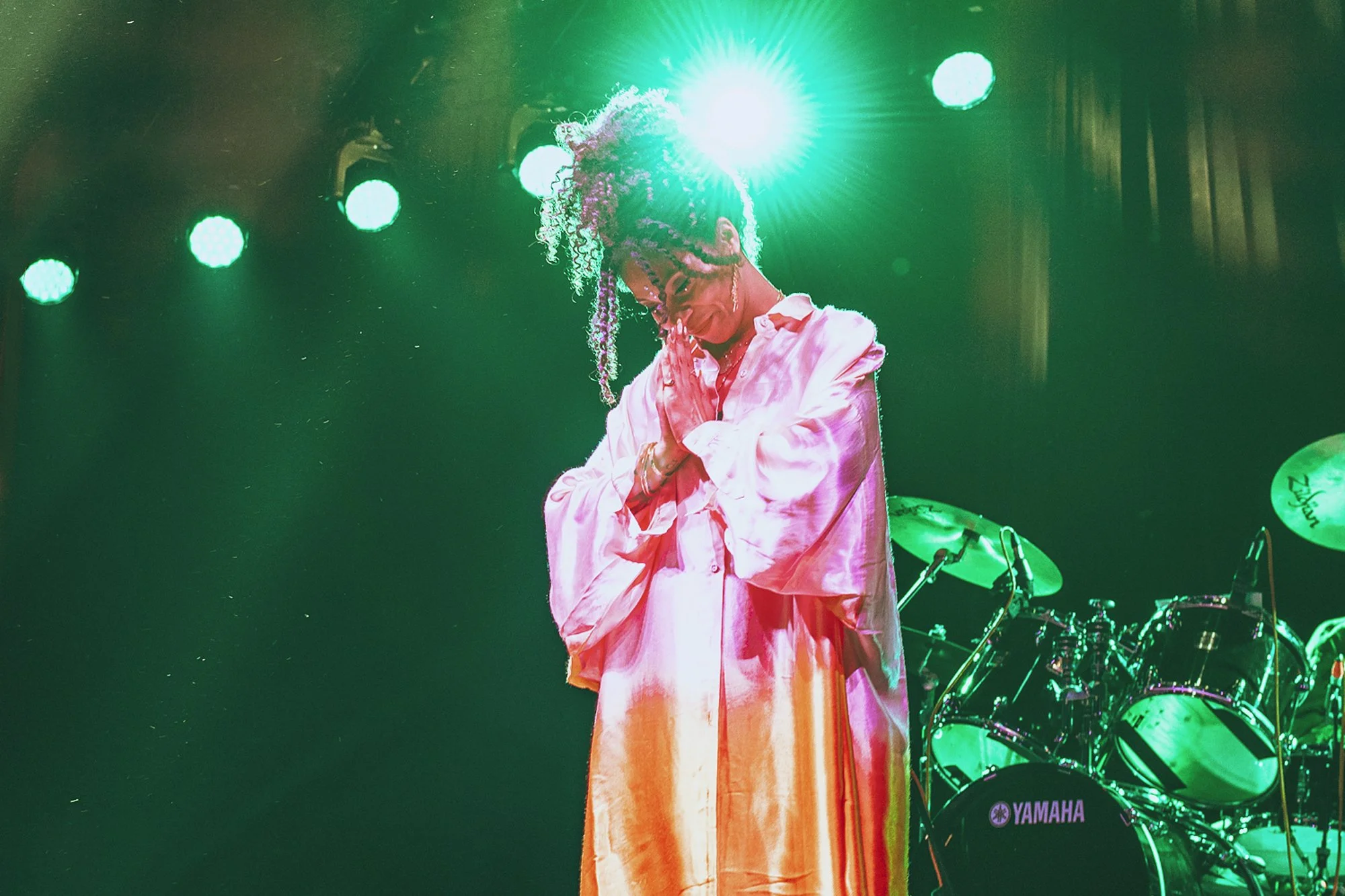 La cantante y el recinto se lucieron con la puntualidad. Exactamente, a las 9:30 las luces rosas iluminaron el escenario y los músicos tomaron sus lugares e iniciaron tocando “Happy Hour”, unos segundos después Hollie Cook salió vistiendo una túnica de seda color rosa con amarillo. Cálidamente, saludó al público mexicano y agradeció la visita. La energía de la artista inmediatamente prendió a las y los asistentes, quienes comenzaron a moverse al ritmo del bajo y de los coros sensuales de la artista.