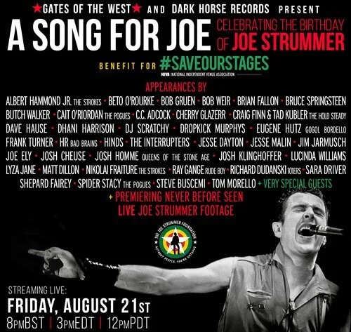 En A Song for Joe: Celebrating the Life of Joe Strummer se presentarán artistas de la talla de Bruce Springsteen, Tom Morello, Lucinda Williams, Bob Weir y otros tantos. También incluirá imágenes en vivo nunca antes vistas de Strummer, junto con mensajes especiales y actuaciones de una mezcla de músicos, cineastas, actores y otros aficionados de Strummer. Además, habrá una sección de donativos en donde podrás apoyar a la organización Save Our Stages, quienes se encargan de apoyar a las salas de conciertos independientes que han sido afectadas por el COVID-19.