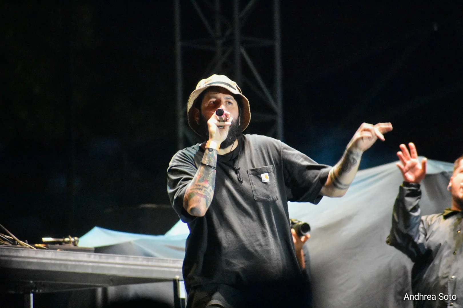 Para calentar, Proof nos llenó con sus rimas reflexivas interpretadas por su melancólica y acogedora voz ronca de ‘Minotauro’, acompañado de talentos como su propio hermano y el Señor Marrano, gran inicio para arrancarnos. Seguido de él, personajes como Kaktov, Remik González, LNG SHT y Prayers, que animaron a las y los cholo rockers del lugar, dado que son un ícono de la cultura cholo goth en California.