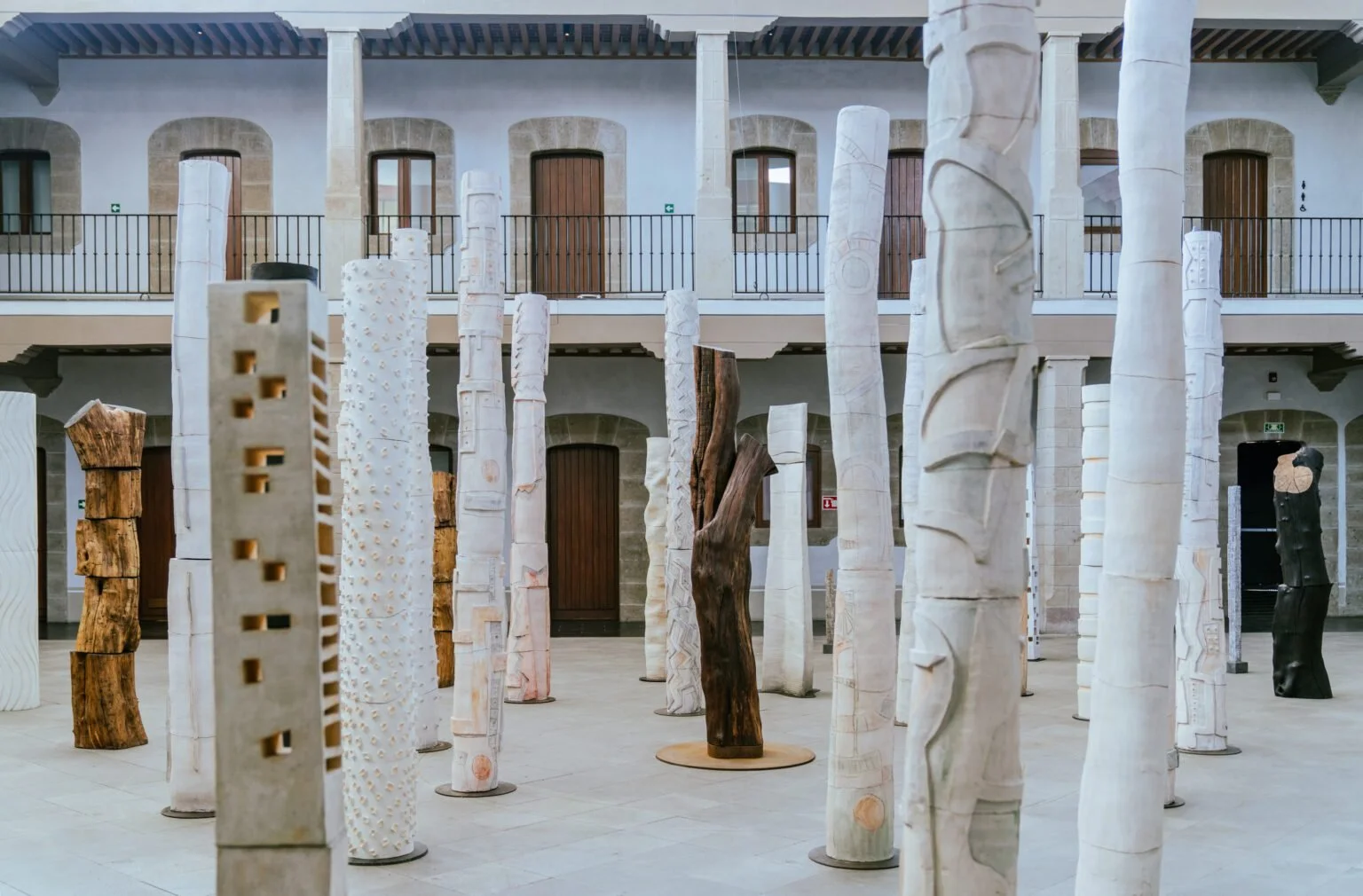 En un festín de texturas, formas y colores, 49 columnas, entre cerámica, madera y piedra, se despliegan en la explanada central del museo, en la que el espectador no puede quedar indiferente. La obra tiene una lógica inmersiva, invita al visitante a caminar entre las piezas en un recorrido propio, que le dé un significado. Esta suerte de bosque urbano, en un acto cuasi senderista, invita a perderse u encontrarse.