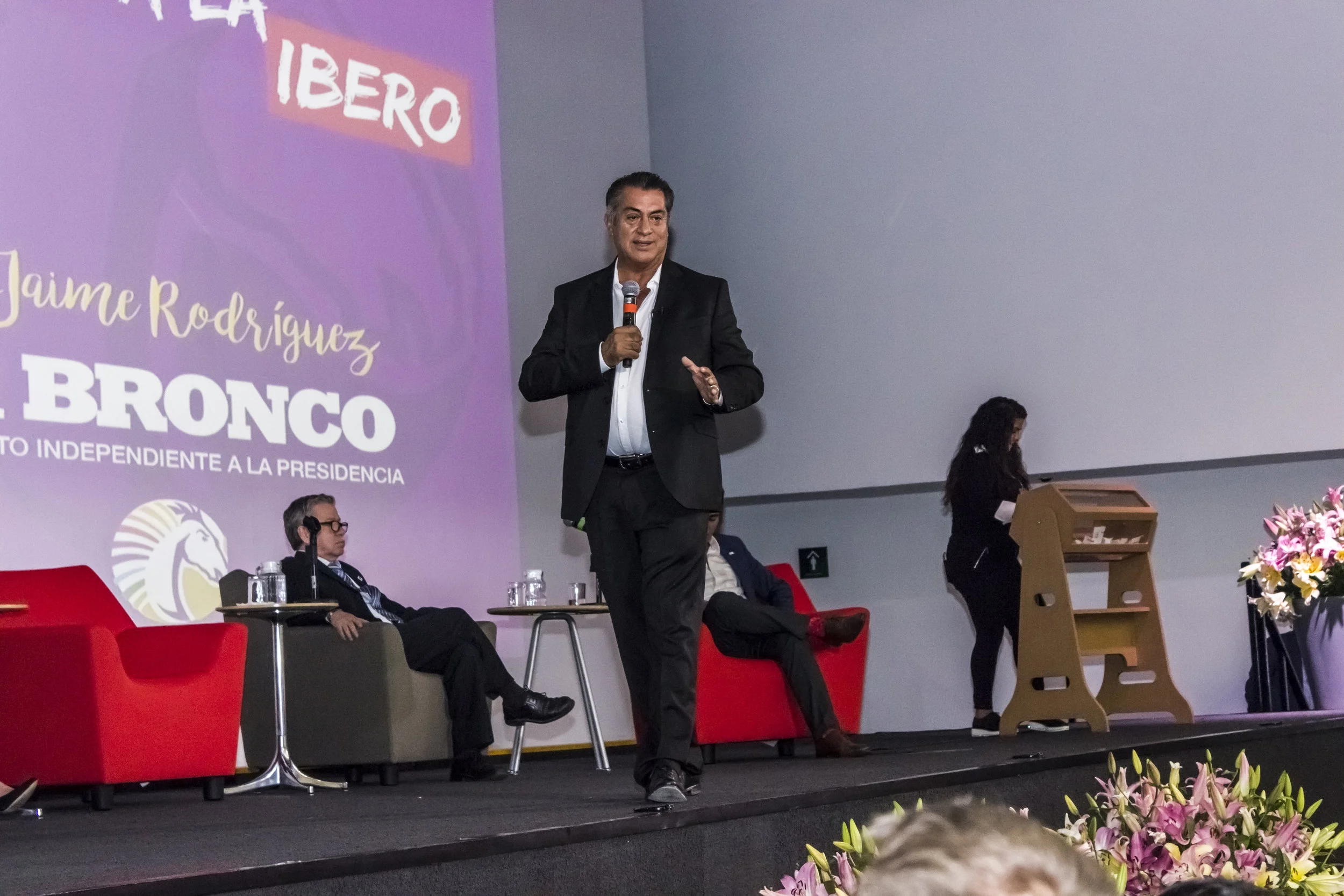 Tras aceptar la invitación que incentivó el hashtag #SinMiedoalaIBERO, el pasado jueves siete de junio, El Bronco se presentó en la Universidad con el fin de dialogar y responder preguntas de algunos estudiantes. La periodista Galia García Palafox, fue la moderadora de dicho encuentro.