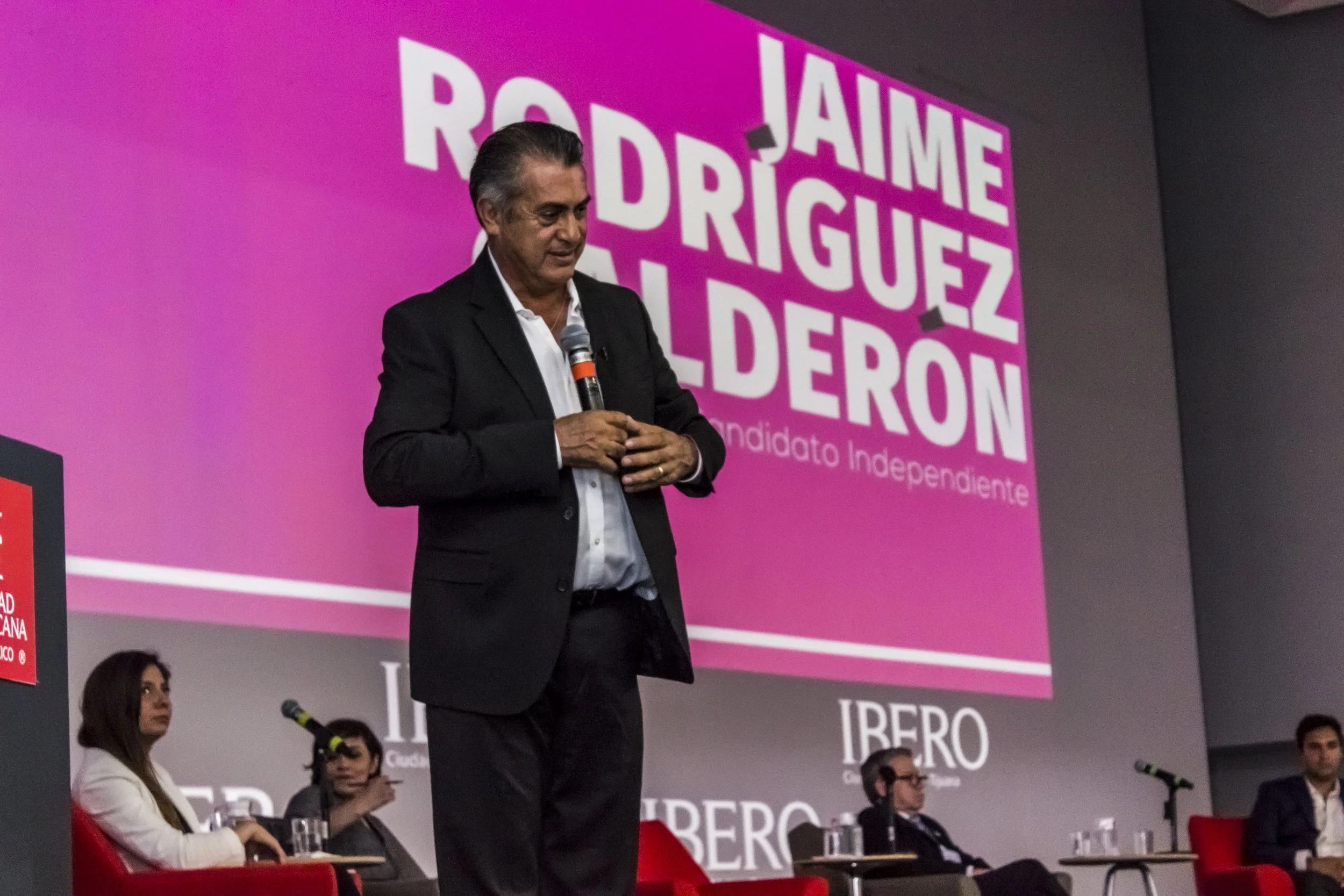 Entre fuertes aplausos, los estudiantes exclamaban “guamas”, “chicharrones”, “móchame la mano” y “machista”; así fue como la Ibero recibió al candidato independiente Jaime Rodríguez Calderón.