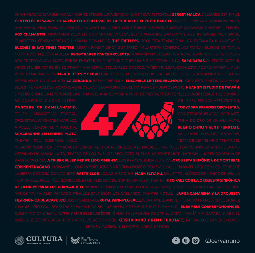 Consulta aquí el programa completo: https://festivalcervantino.gob.mx/programacion