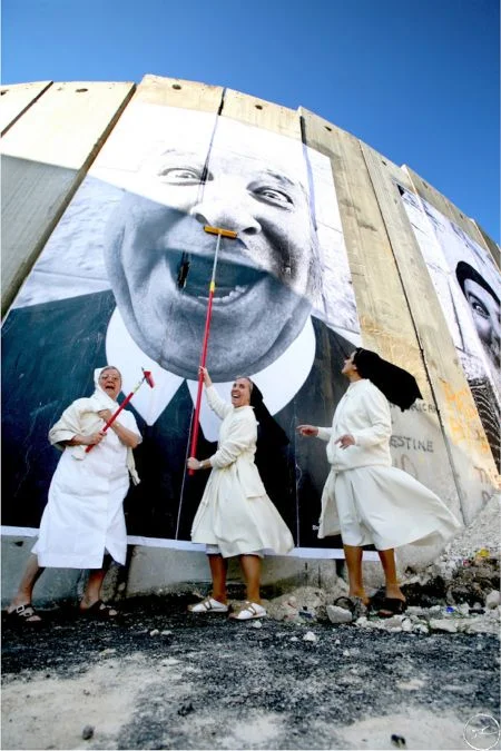 Monjas en acción. Muro de separación, lado palestino. Belén 2017.