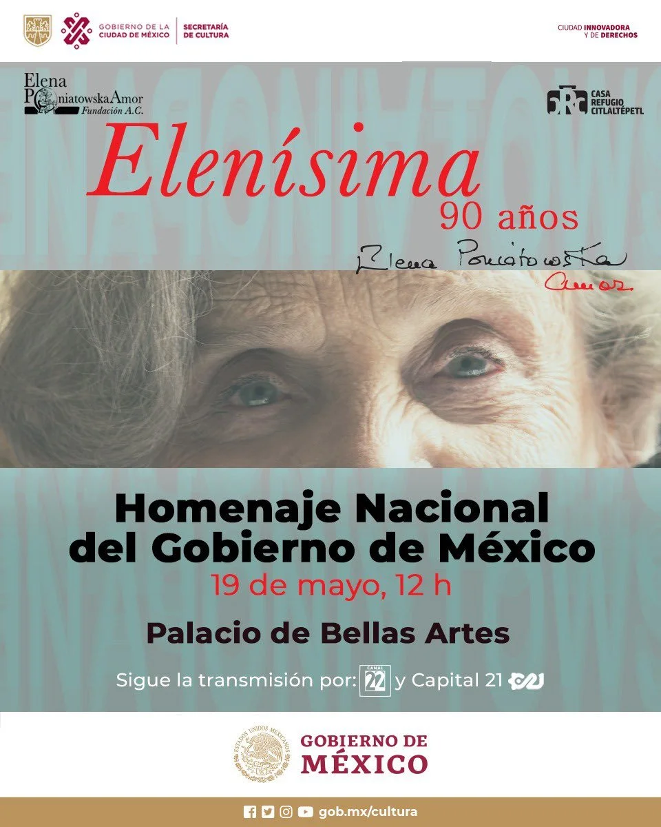 Este jueves 19 de mayo, la Secretaría de Cultura, junto con la cadena televisiva Capital 21, celebrarán a Poniatowska el día exacto de su cumpleaños en el Palacio de Bellas Artes en punto de las 12:00 horas.