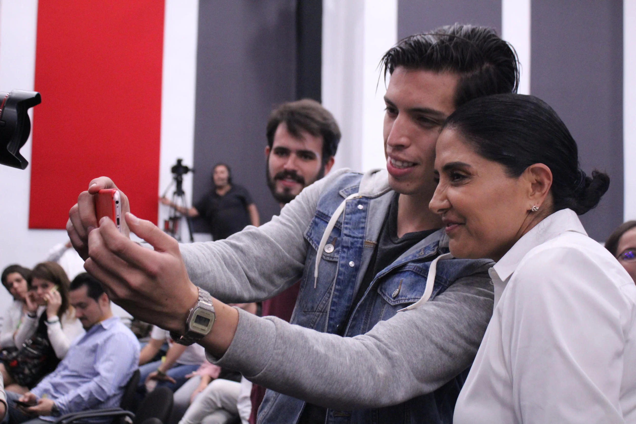 Por último, la candidata de la coalición Por México al Frente, Alejandra Barrales, tuvo la difícil tarea de cerrar el encuentro con la Comunidad Ibero, casi dos horas tarde de lo programado. Bromeó con los estudiante diciendo “los oigo ya cansados, ¿se están durmiendo? Para traerles a Mikel”. Después de esto, decidió romper el cerco invisible entre el escenario y los asientos, para entablar una charla mucho más dinámica entre las filas de estudiantes.