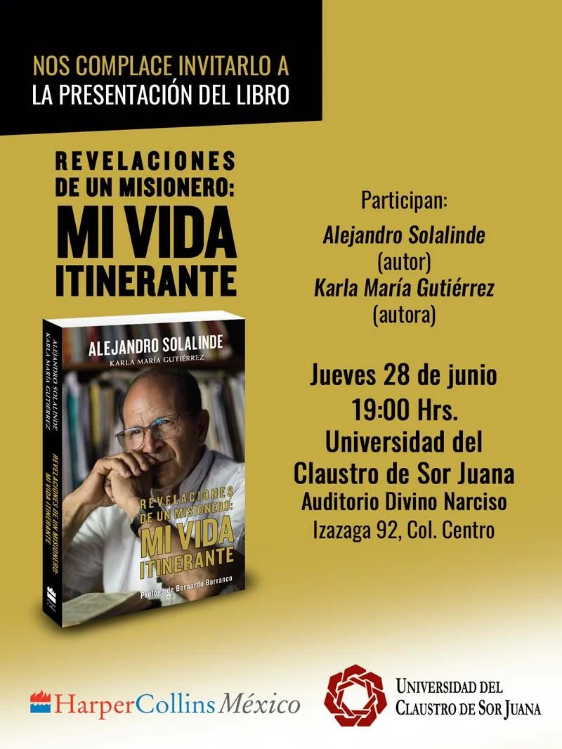 El Padre Alejandro Solalinde y Karla Gutiérrez presentan su nueva publicación Revelaciones de un misionero: mi vida itinerante, una autobiografía que relata sus 14 años de lucha por la defensa de los derechos de los migrantes en México.