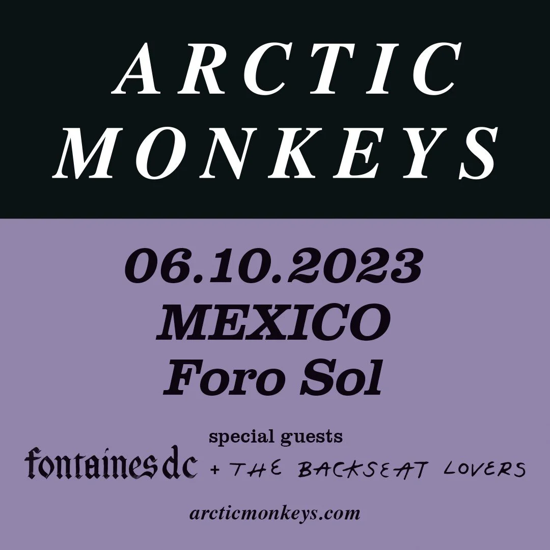 La famosa banda británica de rock, Arctic Monkeys sorprendió a sus fans al anunciar que se presentarán en el Foro Sol este próximo 6 de octubre. Y claro que para la talla de artistas que son, no cualquier banda llenará los zapatos de ser su invitado, por lo que muy ad hoc a su vibra y éxito, les tocó a las bandas Fontaines D.C. y The Backseat Lovers ser estos grandes invitados.