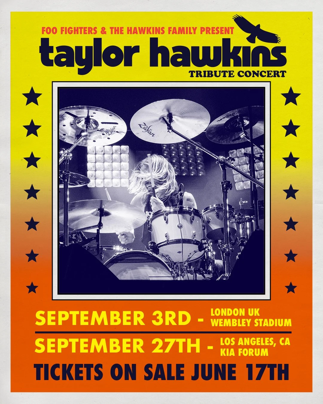 Los conciertos se llevarán a cabo el 3 de septiembre en el estadio Wembley de Londres y el 27 de septiembre en el Kia Forum de Los Ángeles. Aún no se ha dado a conocer quienes participarán pero se presume que sean compañeros e ídolos de Hawkins.
