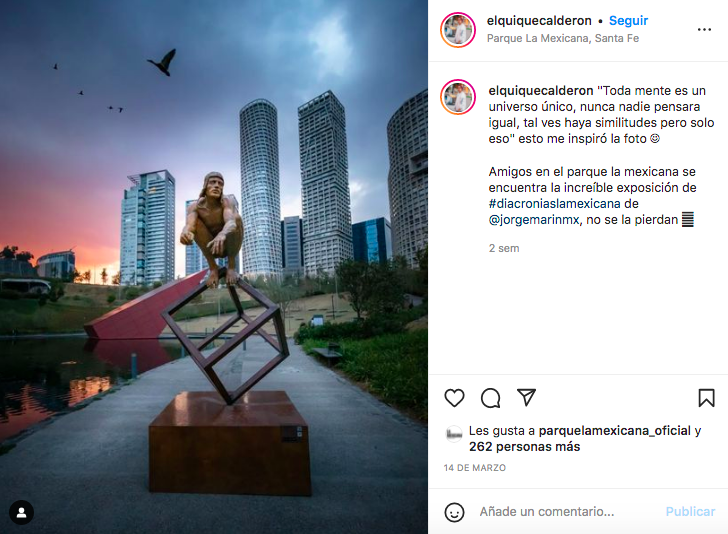 El Estudio Jorge Marín convocó a un concurso con el propósito de promocionar la exhibición de Diacronías del escultor Jorge Marín. Por medio de redes sociales, se invitó a cualquier persona sin límite de edad a que hiciera una fotografía de alguna de las siete esculturas que se encontraban alrededor del Parque La Mexicana.