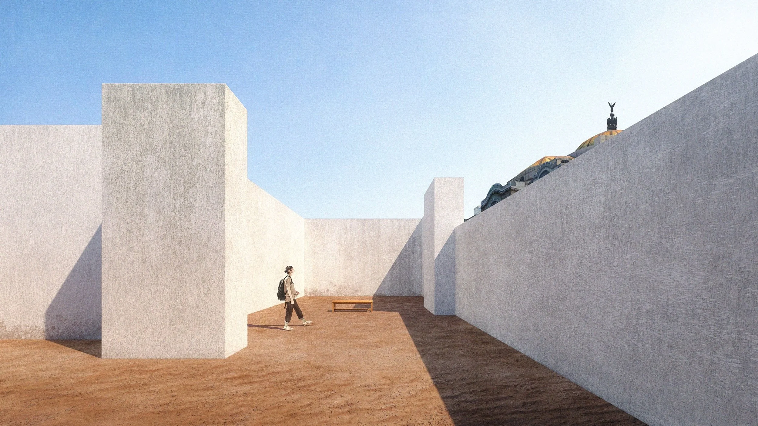 Enclaustra al visitante en su interior con vistas al cielo, pero ahora en el contexto del Centro Histórico, aislándolo del mismo parque. El aspecto político, que decapita el edificio en sí, quedándose sólo con la azotea, es lo que le da más fuerza al proyecto, al cuestionar la idea de: ¿Qué es el patrimonio de la humanidad si realmente no se puede acceder a él? ¿Sigue siendo sagrada la arquitectura si se descontextualiza?