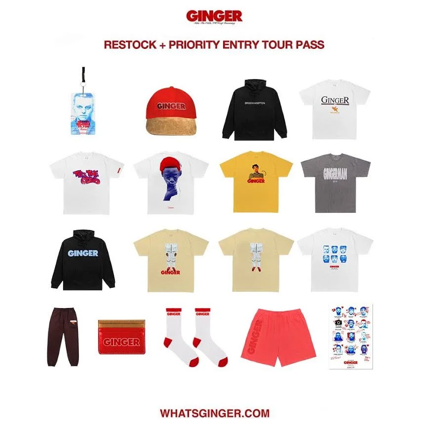 Puedes encontrar merchandise que puede ser adquirido en Whatsginger. En la compra de cualquier artículo, se obtendrá un acceso a la preventa del tour, además de una copia digital del álbum.