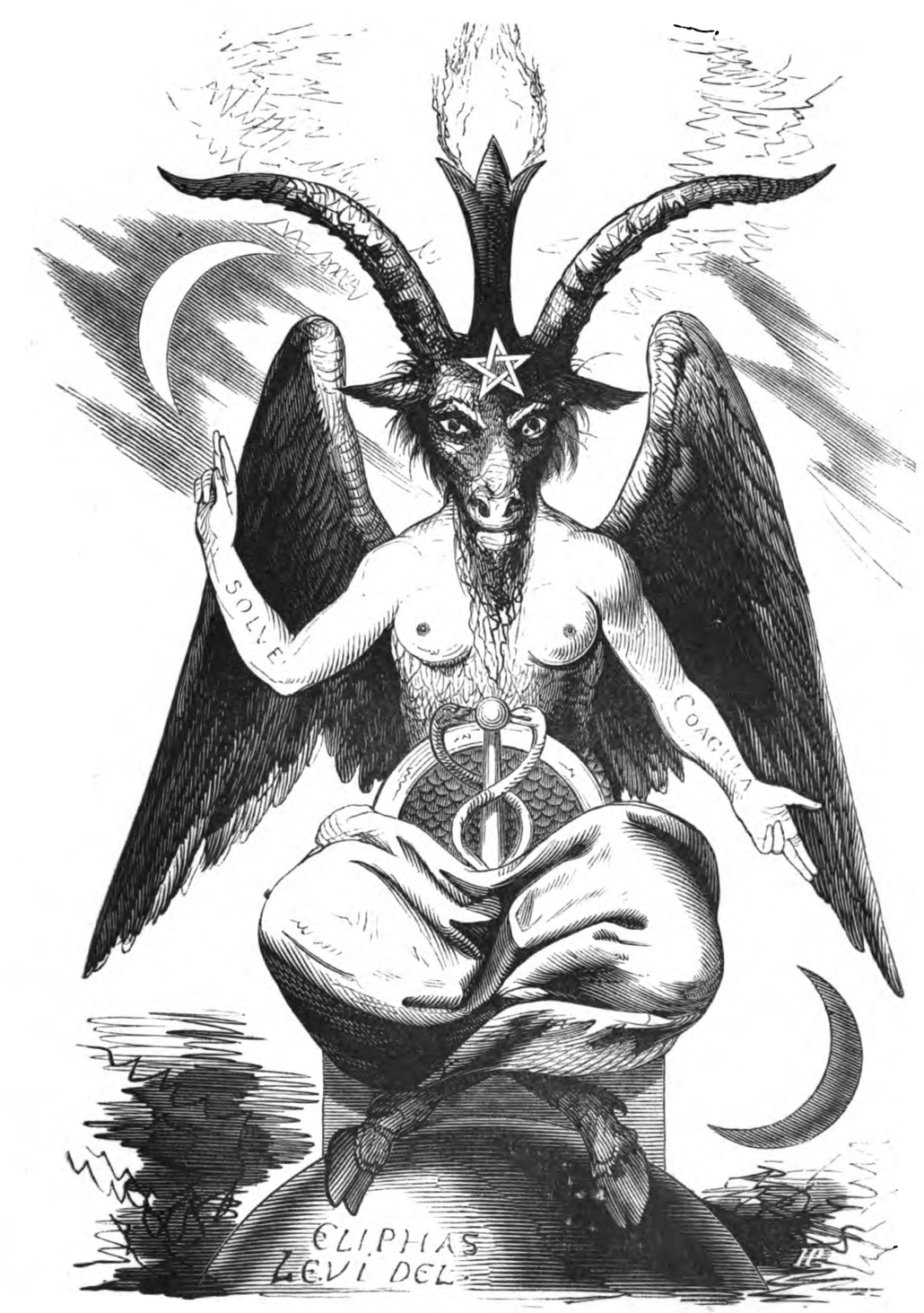 Su uso como imagen ritualística puede trazarse desde los Caballeros Templarios hasta La Iglesia de Satán, que es de donde los conspiracionistas la retoman como evidencia de las adoraciones profanas que realizan los supuestos "iluminados", sirviendo a su vez como referencia de la profunda conexión que la elite tiene con el ocultismo.