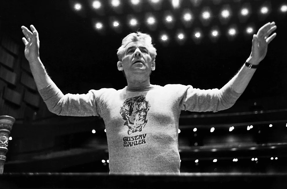 El director Leonard Bernstein, uno de los más importantes directores contemporáneos con una sudadera de Gustav Mahler.