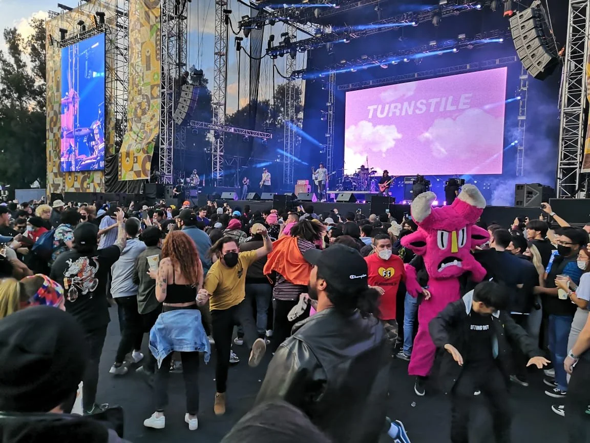 El desenfreno del Corona Capital es inaugurado por la agrupación oriunda de Baltimore, Estados Unidos. Los asistentes recibieron con ahínco la fuerza punk de Turnstile y se armó el slam. Temas de los álbumes Nonstop Feeling o Turnstile Love Connection retumbaron en el escenario Corona Cero.