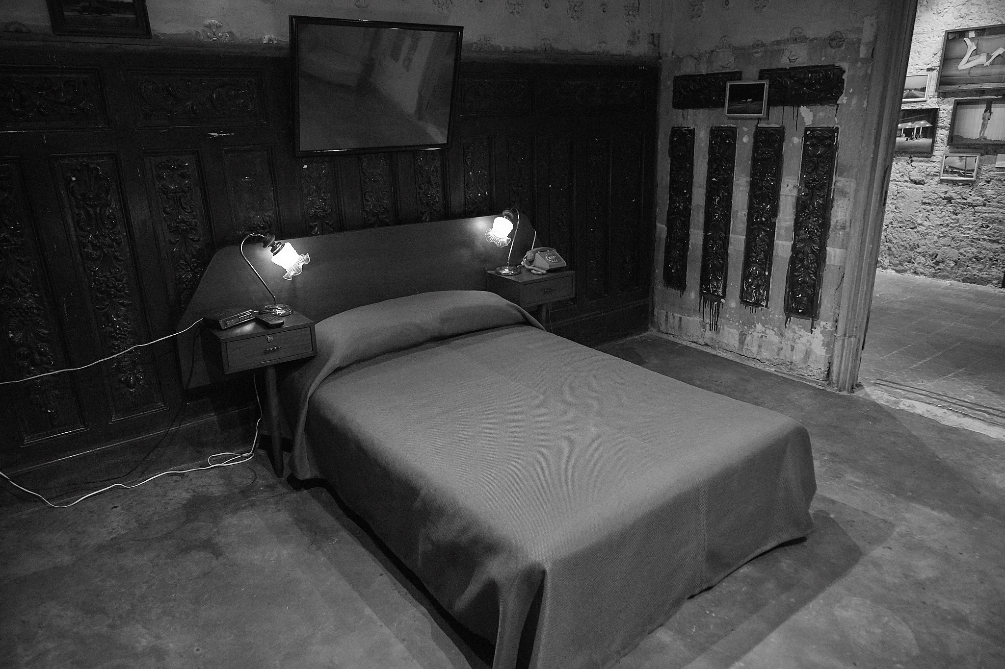 Nos mostró un destello de lo que ocurre dentro de su cabeza. En el primer cuarto había un pequeño staging de un cuarto de motel. Una cama matrimonial con sábanas rojas, dos mesas de noche con una lámpara anaranjada descansando en cada una. En la mesa del lado izquierdo, un despertador digital con los números de la pantalla rojos. En la mesa contraria, un teléfono de alámbrico rojo. Frente a la cama, un sillón anaranjado perfectamente acomodado en el vértice que juntaban las paredes con el suelo, junto a este, una televisión de caja vieja con pantalla LED en la que se reproducía un video con un close up de una mujer masturbándose. Y dos vasos a un lado de la televisión. En la pared, colgaba un pequeño cuadro de un granero.