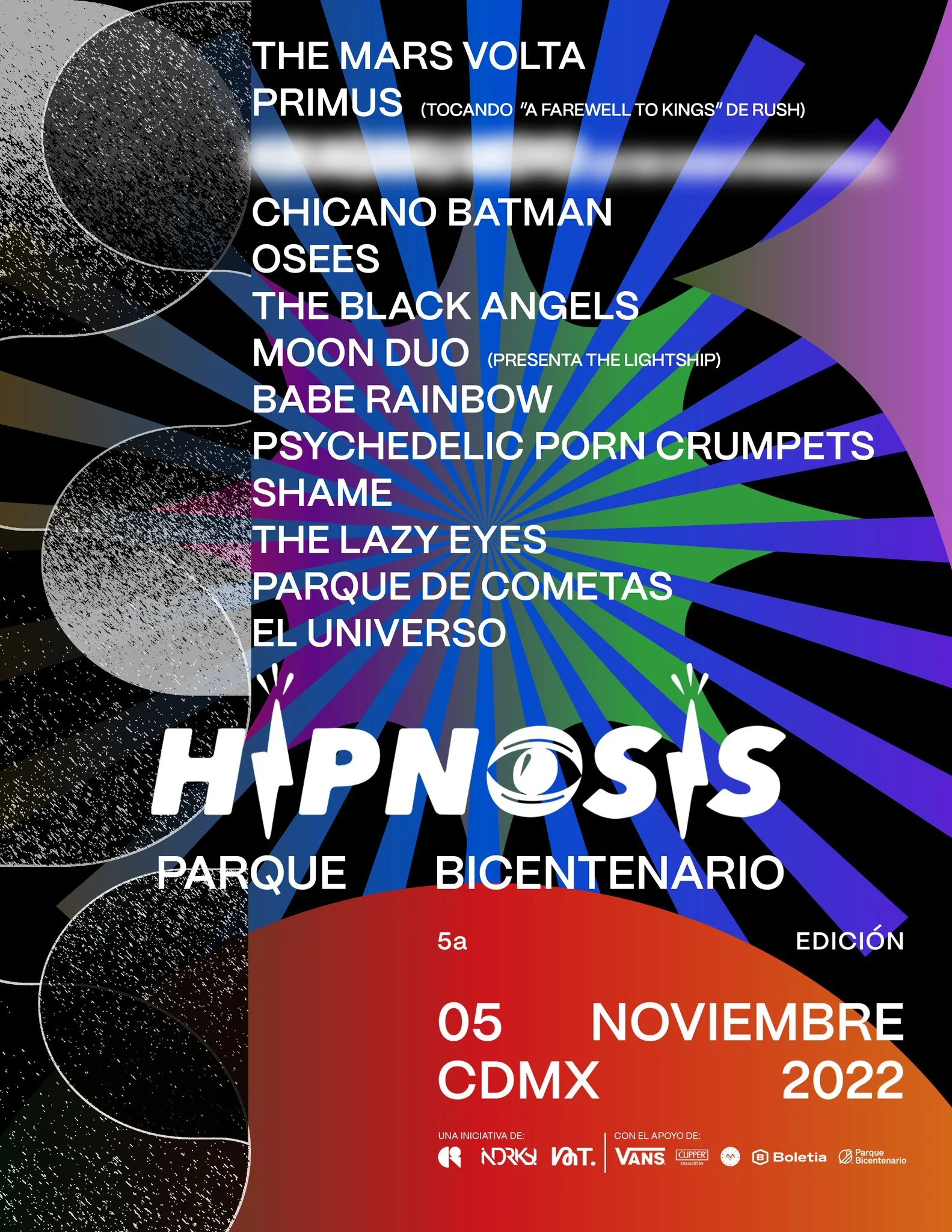 Por segundo año consecutivo, después del encierro por COVID-19, ¡tendremos festival Hipnosis! Y en el cartel de este 2022 destaca el regreso de The Mars Volta y las presentaciones de Moon Duo, Primus, The Lazy Eyes, Psychedelic Porn Crumpets y más.