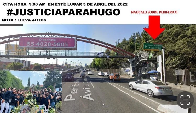 El 5 de abril, la madre y padre de Hugo, un joven de 15 años, así como varios de sus familiares y amigos, bloquearon por más de 13 horas avenida Periférico Norte a la altura del Parque Naucalli, en Naucalpan, Estado de México, para exigir la detención del hombre que asesinó a Hugo.