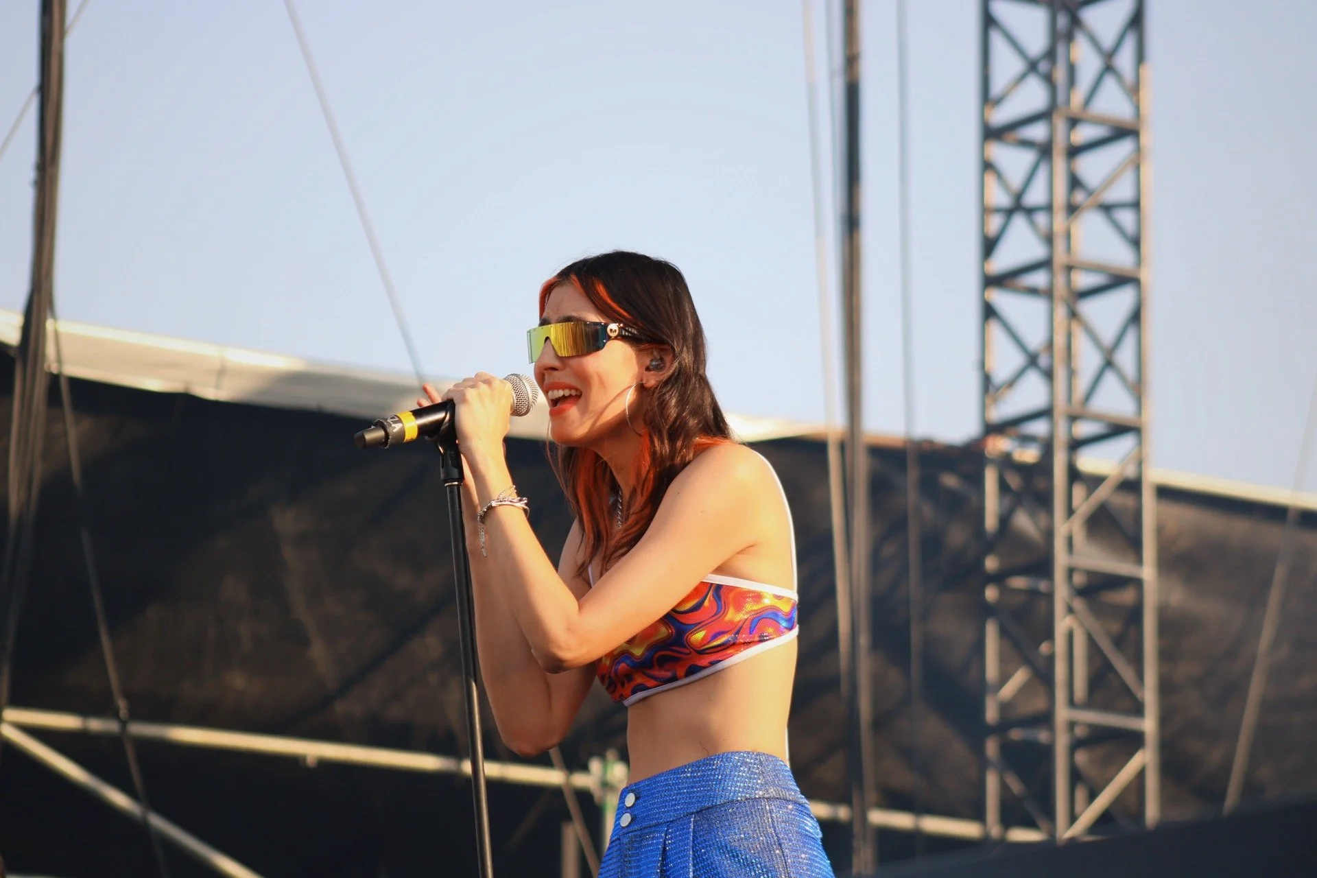 Ya caía la tarde en el festival Pulso de Querétaro, y la hermosísima argentina Daniela Spalla nos tenía en la espera de algo magnífico. Y así fue. Con algunos minutos de espera, de pronto se dejó ver entre los poderosos rayos de sol que alumbraron y potenciaron su magnetismo, abriendo su show con pulsaciones fuertes.
