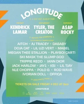 Tras ser cancelado para su debut en 2020, e festival irlandés Longitude regresa en 2021 con una alineación de primer nivel, con los shows de Kendrick Lamar, Tyler, The Creator y A$AP Rocky como principal oferta de su lineup.