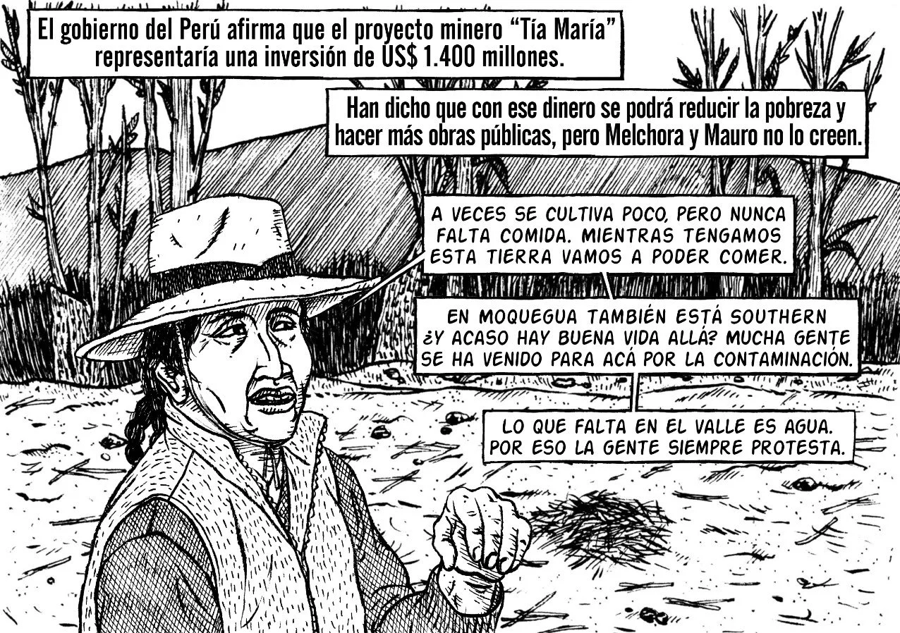 La compañía Southern impulsa desde 2008 el proyecto minero “Tía María” en una concesión de 35 mil hectáreas, debido a la explotación acuífera por este proyecto minero los agricultores de la zona temen quedarse sin agua, especialmente porque se han sufrido sequías últimamente con mayor frecuencia. Esta investigación periodística y enfrentamiento se da en un contexto en el que Perú depende económicamente de los impuestos de las industrias mineras.