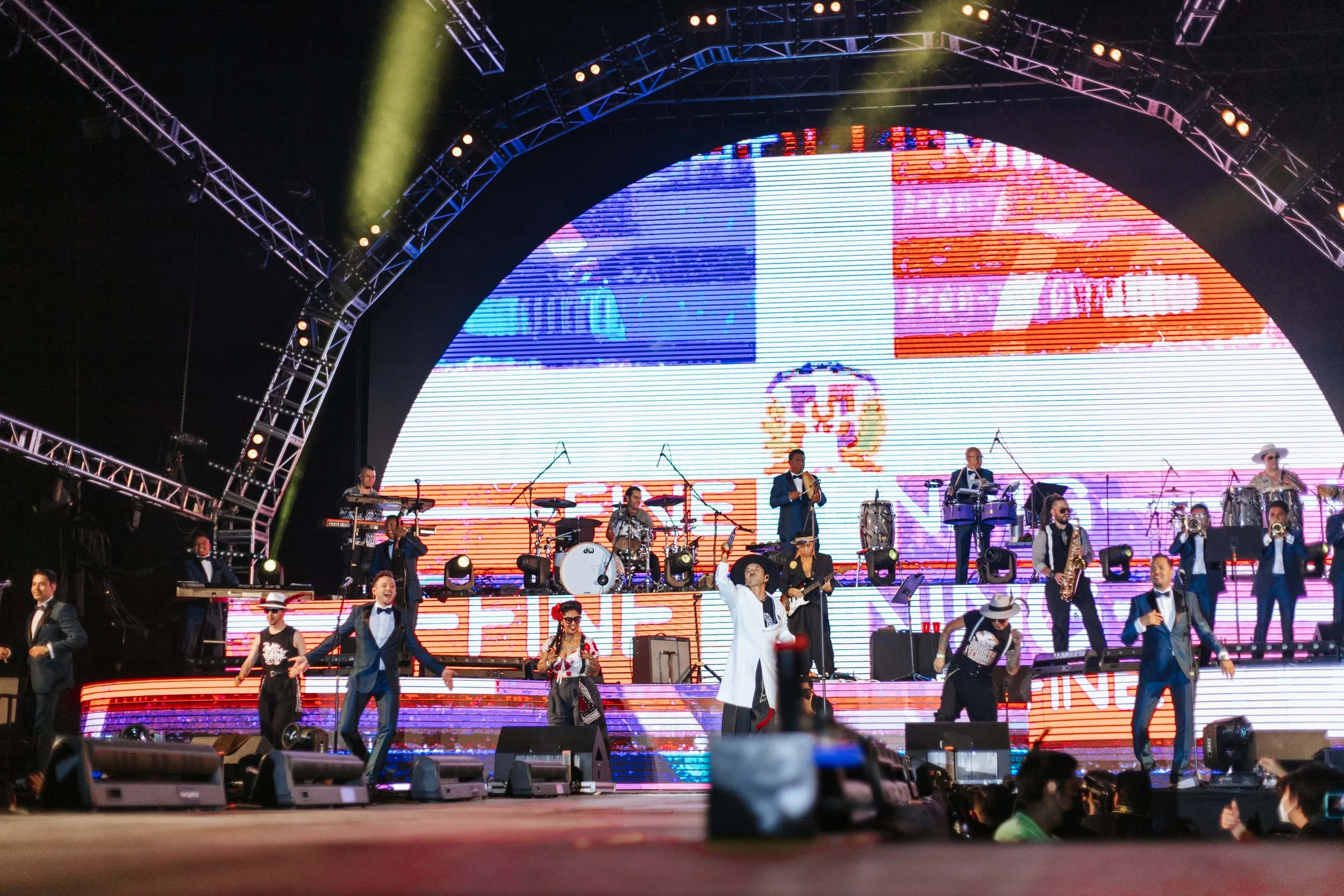 Una mezcla de ritmos se fundieron muy bien para dar una nueva experiencia a las y los asistentes. Rolando Ortega Cuenca, vocalista de la banda de rock, mejor conocido como Roco pachukote, cantó muy a su estilo las canciones de la Santanera, junto con los éxitos de la Maldita, al son de las maracas y trompetas del grupo famoso por “La Boa”.