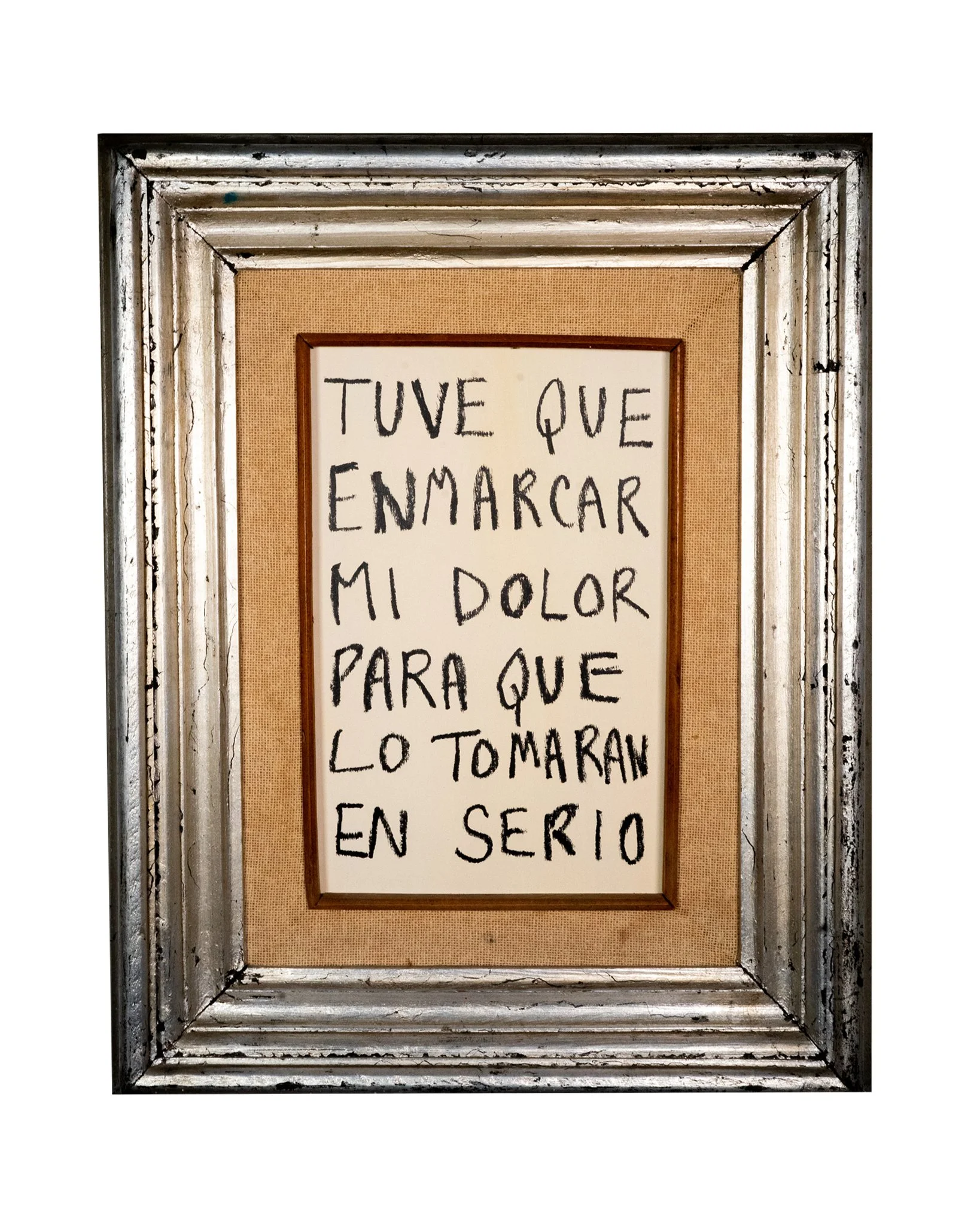 Román de Castro: Crecí en una familia de artistas: mi papá es músico y escritor, mi mamá es fotógrafa y artista plástica. Empecé muy pequeño con la música y el teatro, pero escribir fue lo que captó mi atención. Después llegó la fotografía y la pintura, pero las letras nunca se fueron. Entonces comencé a escribir sobre las cosas, literal, lo que fuera: fotos, lienzos, bolsas de papel, pasaportes, blocs de hoteles y sillas. Al final, lo único que yo quiero es poder escribir un mensaje y el medio para transportar ese discurso depende de la intención. No podría poner las mismas palabras sobre una hoja en blanco que sobre una mecedora.