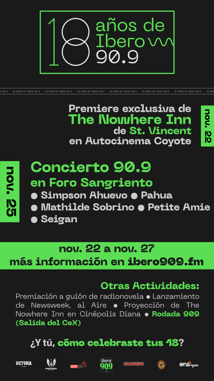 Este año fue posible convivir un poco más de cerca, y de manera presencial con varias actividades: la premiere exclusiva de la película de St. Vincent, The Nowhere Inn; un concierto exclusivo con grandes talentos musicales Simpson Ahuevo, Pahua, Mathilde Sobrino, Petite Amie y Seigan, nuestra banda ganadora de Disrupción de Bandas Tracker 909; una rodada ciclista desde el Centro de Exploración y Pensamiento Crítico (CEX), espacio cultural de la Ibero. Además lanzamos un nuevo programa, Newsweek al aire, y tuvimos transmisiones especiales.