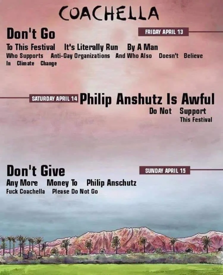 “Coachella y sus organizadores nunca fueron tus amigos, sólo quieren tu dinero y no para buenas causas”