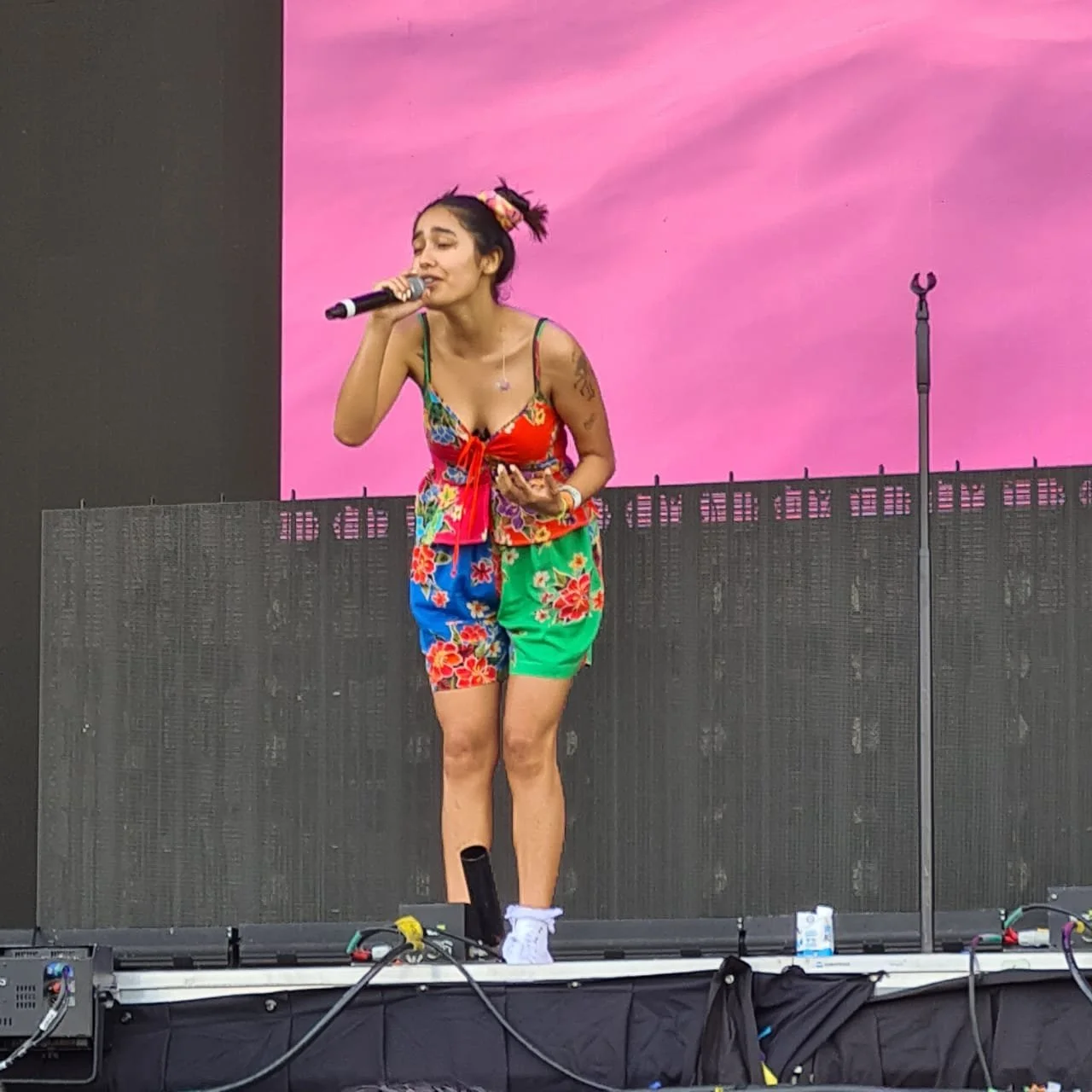 La nacida en California, ha encontrado inspiración en la Costa Oeste y escribe tanto en inglés como en español. Durante su presentación interpretó un cover de Paramore en acústico "The only exception".