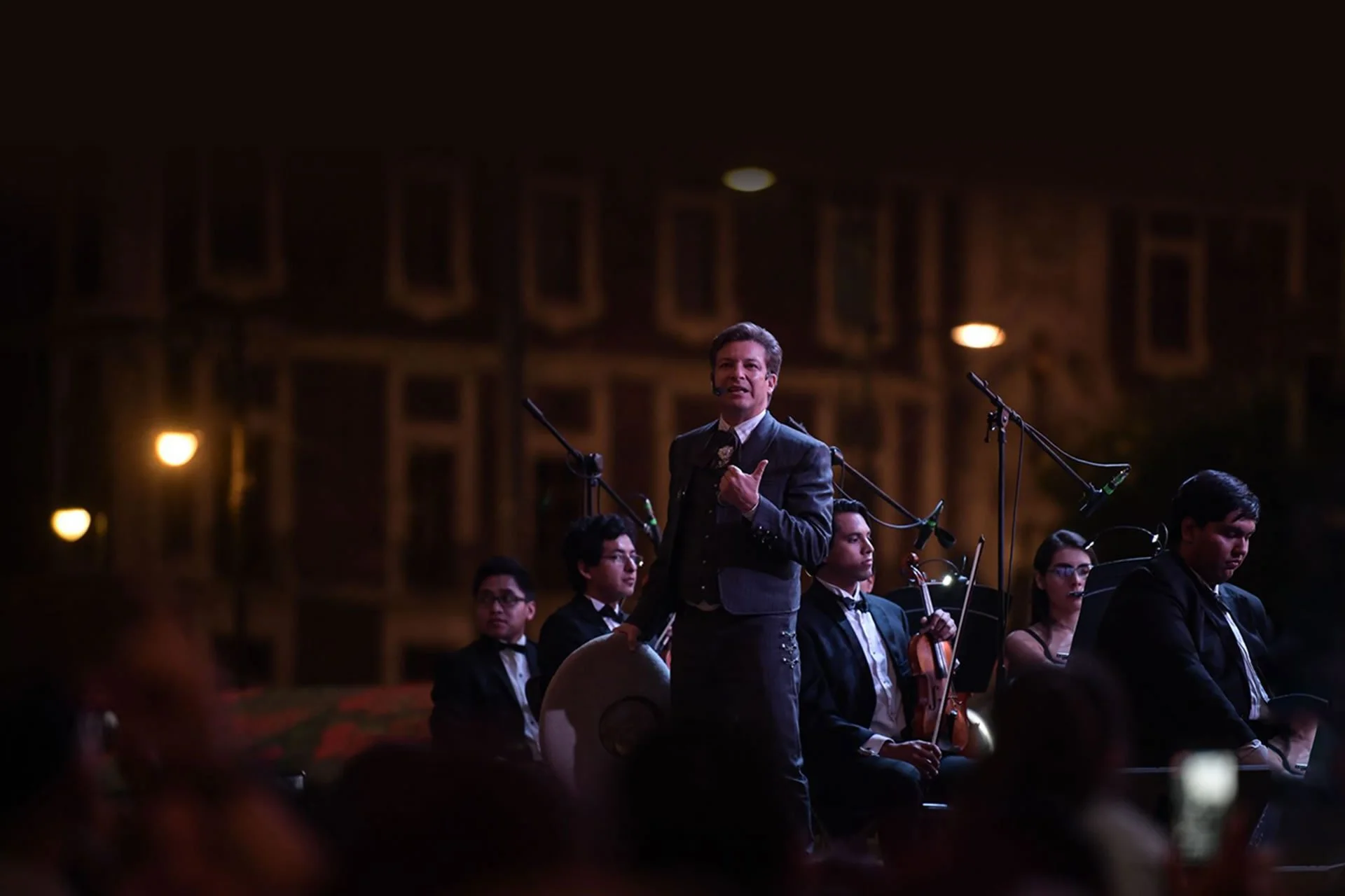 Esta combinación de la música de mariachi con la orquesta fue acompañada por las sopranos Romina Rayón y Maribel Salazar, los tenores Jesús Palato y José Luis Ordóñez, y el actor Mario Carballido, quienes pusieron voz a los jóvenes y talentosos músicos. El programa inició con un fragmento a capela del poema “México creo en ti”, de Ricardo López Méndez, y fue seguido por la interpretación de canciones memorables como “El jarabe tapatío”, “El son de la negra“ y “Cielito lindo”. En respuesta, el público entonó al unísono (y en voz baja para seguir escuchando al joven talento musical) las melodías mexicanas.