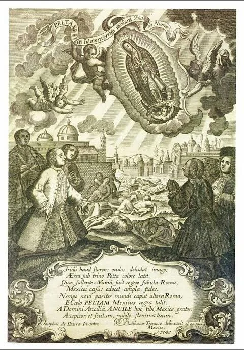 La investigadora del CIESAS, América Molina del Villar reporta que en agosto de 1736 “en un obraje de la ciudad de México, algunos indios enfermaron y murieron a consecuencia de una severa enfermedad llamada Matlazahuatl. El nombre náhuatl del padecimiento revelaba algunos de sus síntomas característicos: matlatl, que significaba red, y zahuatl, pústula o granos, o sea red de granos”.