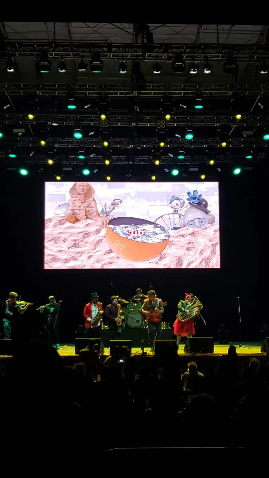 La explanada de la histórica alhóndiga de granaditas se transformó en una gran carpa de circo, donde gracias a la fusión de ritmos gitanos, de la polka, el jazz, el ska, chilenos oaxaqueños, entre otros, Triciclo Circus Band levantó a la gente de sus asientos con brillantes melodías que generaron un ambiente de alegría colectiva entre las y los espectadores que rondaban todas las edades.