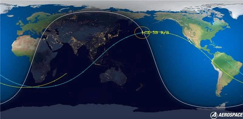 The Aerospace Corporation, medio dedicado a difundir información de estos temas, compartió en su cuenta oficial de Twitter una imagen de cómo fue la trayectoria del cohete chino March 5B donde claramente se ve que nunca entra al territorio mexicano.