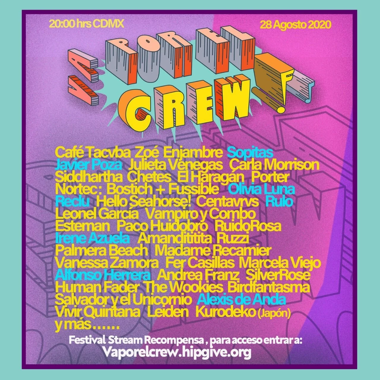 Desgraciadamente la pandemia del COVID-19 nos ha visto obligados a separarnos de estos eventos masivos, con ello ha dejado a todos esos “héroes sin luz” sin poder laborar y generar ingresos dentro de esta época de la patada. Al percatarse de esta situación, varios artistas y bandas musicales han impulsado la iniciativa: ¡Va por el Crew!, que consiste en hacer donativos (a partir de 100 pesos MXN) a todas esas personas que no solemos agradecer ni ver en el escenario. A cambio del donativo que realices recibirás recompensas personalizadas de tus artistas favoritos: Café Tacvba, Julieta Venegas, Zoé, Chetes, entre otros. Además, todos los artistas que se han unido a esta causa han decidido dar un concierto virtual el viernes 28 de agosto a las 8:00 pm. Podrás estremecerte con el grupo de rock que sacudió los noventa, Café Tacvba o deleitarte los últimos sencillos de la mexicana de pop psicodélico, Vanessa Zamora.